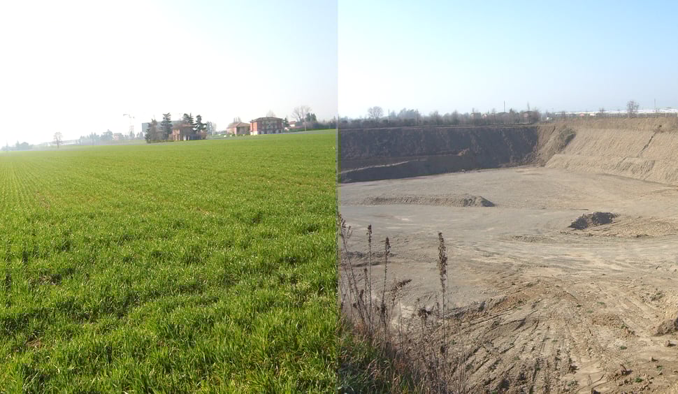 Prima di scavare la ghiaia i cavatori devono mettere da parte lo strato di terra superficiale (cappellaccio) per usarlo nei “ripristini” finali.