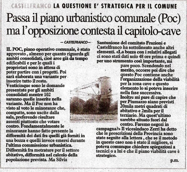 07. febbraio 2010 ....Passa il piano comunale P.O.C. ........ Riportiamo l'articolo uscito sul Carlino del 6-2-010.... tagPlaceholderTag: Scrivi commento Commenti: 0