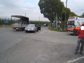 Sono da poco passate le 10 del mattino nella piccola località California e nell’incrocio tra via Martiri Artioli, via Salvetto e Muzza Corona, succede l’ennesimo incidente. Per la cronaca di quest’ultimo mese, anche questa volta le conseguenze non sono state fortunatamente drammatiche. Una Wolkswagen con a bordo due coniugi anziani e proveniente da Bazzano s’impatta con un furgone Ford da Spilamberto, guidato da un ragazzo il quale, non notando l’auto in arrivo, non rispetta la precedenza. La la donna, la più grave, ha riportato una ferita con forte contusione alla mano e un grande shock. Sul posto un’autoambulanza del 118 arrivata da Vignola ha poi trasportato la signora in ospedale per accertamenti. Da segnalare che, dopo aver più volte sollecitato l’intervento dei vigili da parte di un cittadino, si sono presentati i carabinieri ; l’automobile dell’uomo, anch’egli parecchio scosso, era rimasta praticamente in mezzo la strada, il traffico era sostenuto e, ciliegina sulla torta, diversi camion di ghiaia facevano a zig zag tra la macchina ferma e l’autoambulanza… una situazione abbastanza surreale.