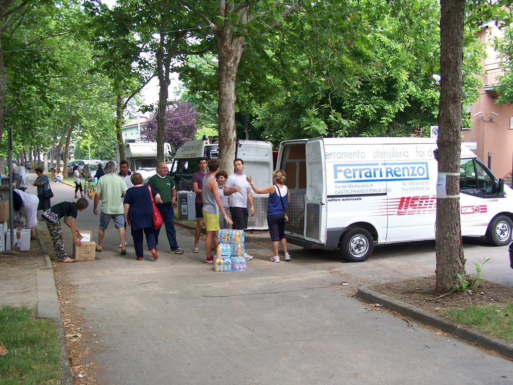 Continuano incessanti le raccolte di materiali di consumo, per le persone colpite dal sisma nella bassa Emiliana...Persone che con i propi mezzi partono ogni Sabato o Domenica, da ogni dove, e sopratutto dalla nostra sede in via Ugo Bassi, ormai trasformata in un piccolo magazzino, per raggiungere persone veramente bisognose, nostri vicini di casa. Sul posto ci sono numerosi campi di accoglienza, gestiti in libera autonomia, seguiti da persone arrivate da ogni luogo, in quelle terre martoriate e soffrenti, una grande forza ha dato vita ad una speranza,e sopratutto si è riscoperta una fratellanza tra tutti noi, che forse si era perduta...