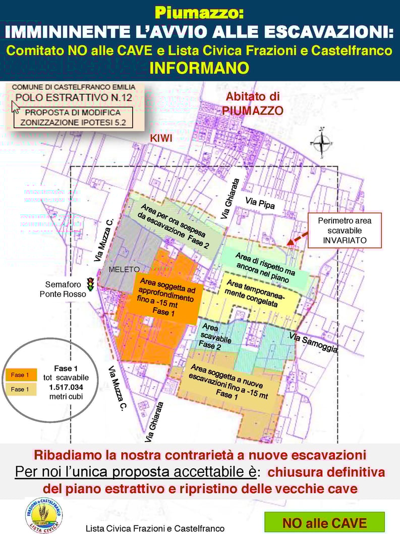 "Apprendiamo con sconcerto dal segretario comunale castelfranchese,Matteo Benuzzi,che nel 2018 le cave sui territori agricoli in piena conoide di ricarica delle falde rimangono ancora una
