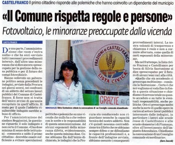 In data 29-04-2011, una Mozione "NO al NUCLEARE" della Lista Civica Frazioni e Castelfranco é stata inviata all'ufficio protocollazione del Comune di Castelfranco Emilia, con speranza di mantenere quello che già espresso con delibera di Consiglio Comunale n66 del 17/03/2010, ovvero la contrarietà all'installazione di centrali nucleari a all realizazzione di siti di stoccaggio per scorie radioattive all'interno del proprio territorio comunale e la dichiarazione che il territorio del comune di Castelfranco Emilia è "ZONA libera da installazioni nucleari civili e militari"..........leggi qui il testo integrale