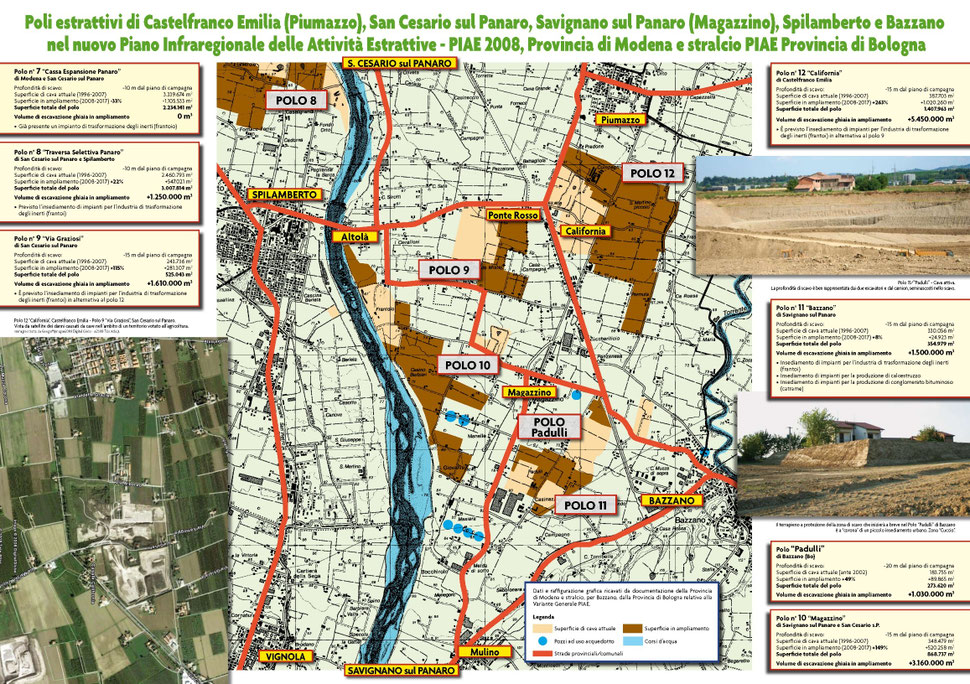 L’11/7/2008 l’amministrazione comunale di Castelfranco, all’Arci di Piumazzo, organizza il primo incontro pubblico per illustrare il Piano delle Attività Estrattive.